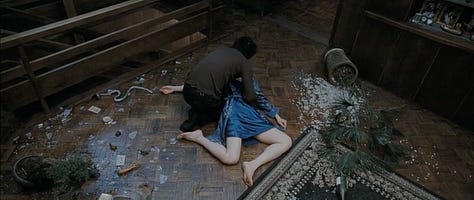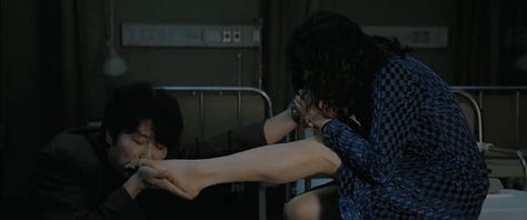 Chan-wook always builds comedy and romance into his films (for better or worse), but I particularly love the “romance” in Thirst. Though these characters deeply desire each other, their scenes never look sexy. Sang-hyun and Tae-jun are clumsy and desperate, constantly reacting out of guilt and/or frustration. These vampires are not cool or seductive. As they lean into their desires, the colour palette of the film shifts from bland beiges and browns, to blinding neon whites and blues. Ultimately, Thirst is an exploration of restriction and desire, of the length these characters will go to satisfy a longing they don’t even comprehend.